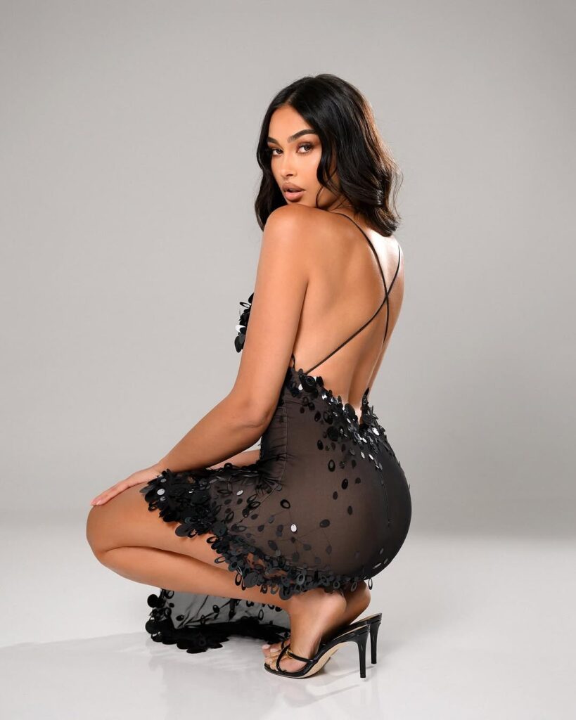 E veshur me një fustan elegant të zi që theksonte linjat trupore, Adrola u shfaq më joshëse se kurrë, duke marrë mijëra pëlqime dhe komente nga fansat.