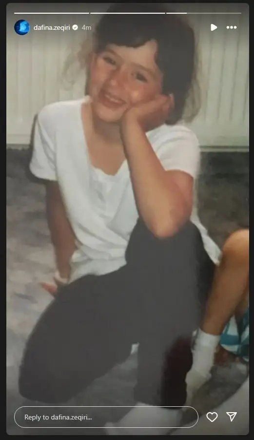 Këngëtarja e njohur Dafina Zeqiri ka ndarë me ndjekësit e saj disa kujtime të rralla nga fëmijëria. Në rrjetet sociale, artistja ka publikuar një fotografi të hershme, ku shihet si një vajzë e vogël, plotë ëmbëlsi dhe spontanitet.