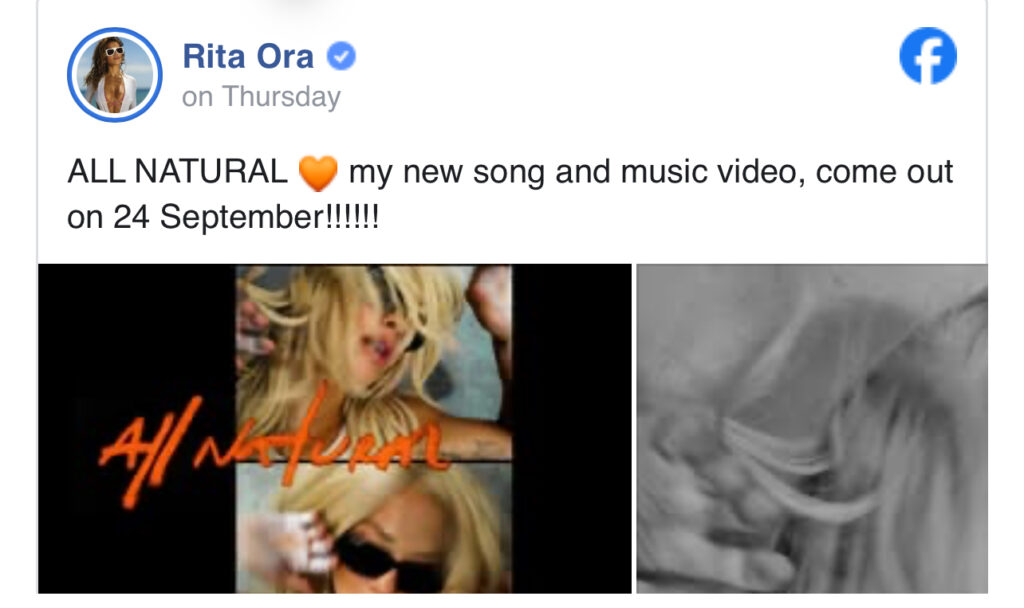 Këngëtarja shqiptare me famë ndërkombëtare, Rita Ora, ka njoftuar se më 24 shtator 2025 do të publikojë projektin e saj më të ri muzikor të titulluar “All Natural”, shkruan albinfo.ch. Ky pritet të shënojë një tjetër rikthim të fuqishëm të saj në tregun global të muzikës pop.